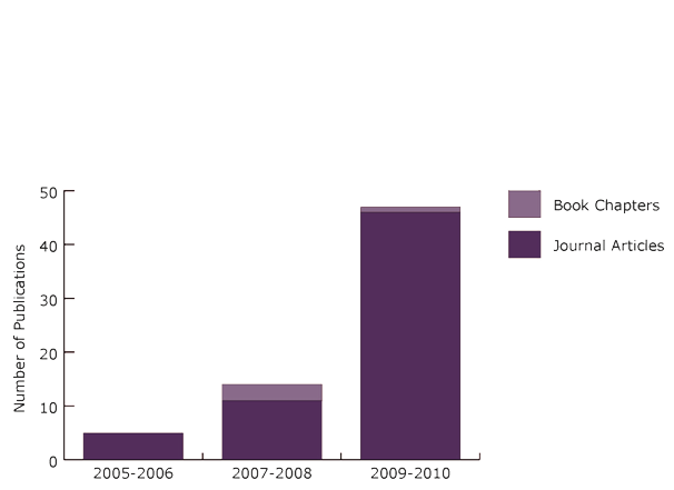 Our most up-to-date list of research publications is available. During 2007-2008 the group had a total output of 256 papers in referred journals, 18 book chapters and 4 books. In 2009-2010 the group was exceptionally productive with 525 papers in refereed journals, 22 book chapters and 1 book.